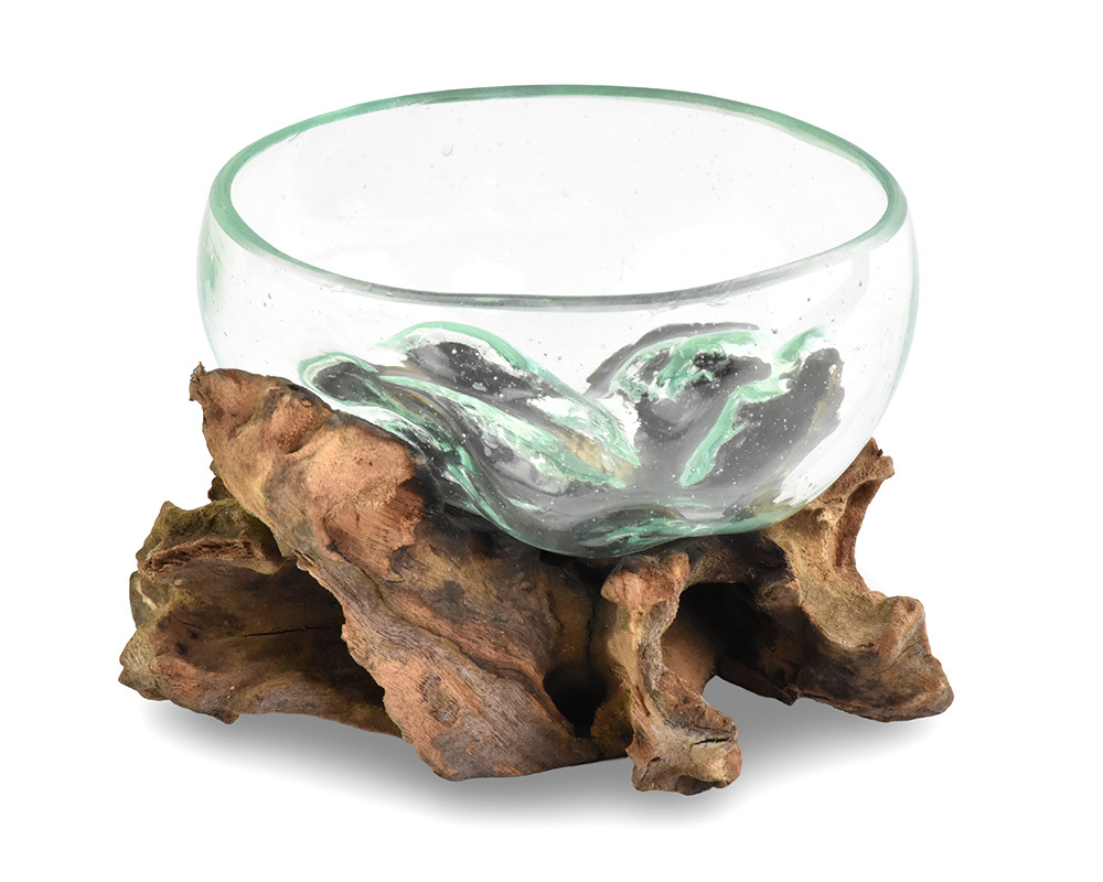 Skleněná mísa na dřevě malá 12 cm - var. F