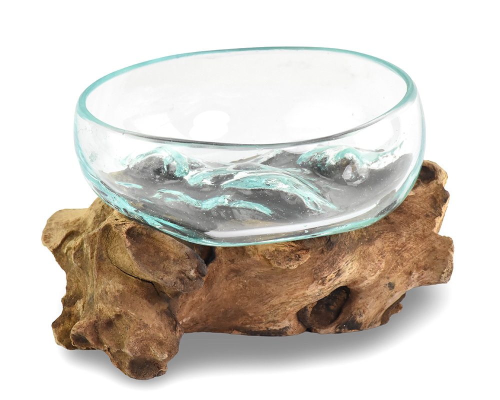 Skleněná mísa na dřevě malá 12 cm - var. Q