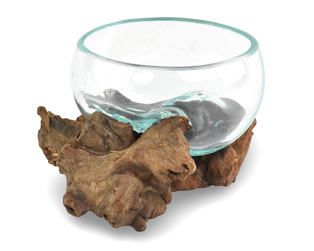 Skleněná mísa na dřevě malá 12 cm - var. S