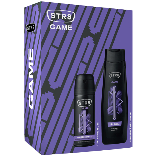 Dárková kazeta obsahujeDeo sprej Game 150 mlSprchový gel Game 250 mlPopis Tato řada pánských vůní a kosmetiky vás spolehlivě doprovodí v práci, při sportu, na cestách i večer. STR8 Game kosmetika nezná věkové meze, je to péče pro všechny muže. Deodorant ve formě spreje bez obsahu hliníku....