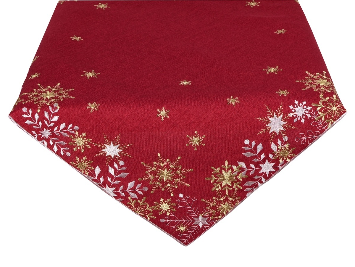 Exkluzivní dekorační vyšívaný ubrus přinese do vašeho domova kouzlo svátků a vytvoří tu pravou slavnostní atmosféru. Ubrusy jsou vyrobeny z kvalitní tkaniny, která dodává elegantní vzhled. Jemný motiv vloček přidává nádech luxusu, zatímco bílý lem podtrhuje jeho sofistikovaný design. Vyroben s...