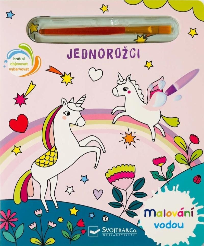 Knížka s pevnými stránkami je plná obrázků s kouzelnými jednorožci, které jsou částečně barevné. Bílé části lze velice snadno vybarvit - stačí namočit štětec, který je součástí knihy, do vody a barva se jako zázrakem na bílém podkladě objeví. To ale není všechno! Vymalovaný obrázek jako kouzlem...