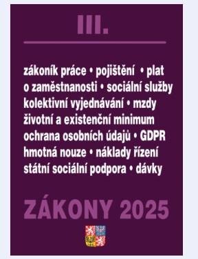 Zákony III 2025 Zákoník práce, Pojištění, Sociální služby - GDPR, zaměstnanost, ochrana zaměstnanců, pojištění – nemocenské, zdravotní, důchodové (česky)