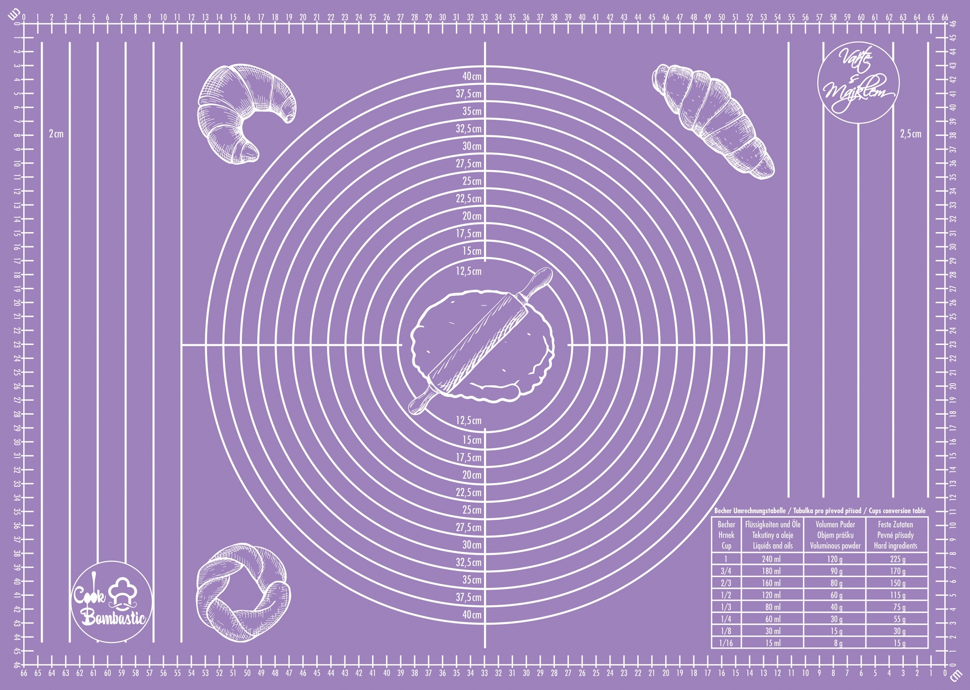 Tato silikonová podložka je všestranný pomocník přii práci v kuchyni. Je ideální pro vyvalování a tvarování těsta na oblíbené jablečné záviny, linecké koláče, cukroví nebo sušenky, které nemusíte tolik podsypávat moukou. Je opatřena praktickými měřítky a stupnicemi pro dobrou a rychlou orientaci...