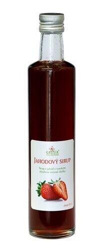 Sirup z jahod s vysokým obsahem ovocné složky.Složení: cukr, jahodová šťáva min. 45 %, koncentrát z citrónůPřípadný zákal není na závadu.Použití: Naředit vodou v poměru 1:10. Po otevření uchovejte nejlépe v chladničce. Nevystavujte přímému slunečnímu záření.Průměrné výživové hodnoty ve 100 ml...
