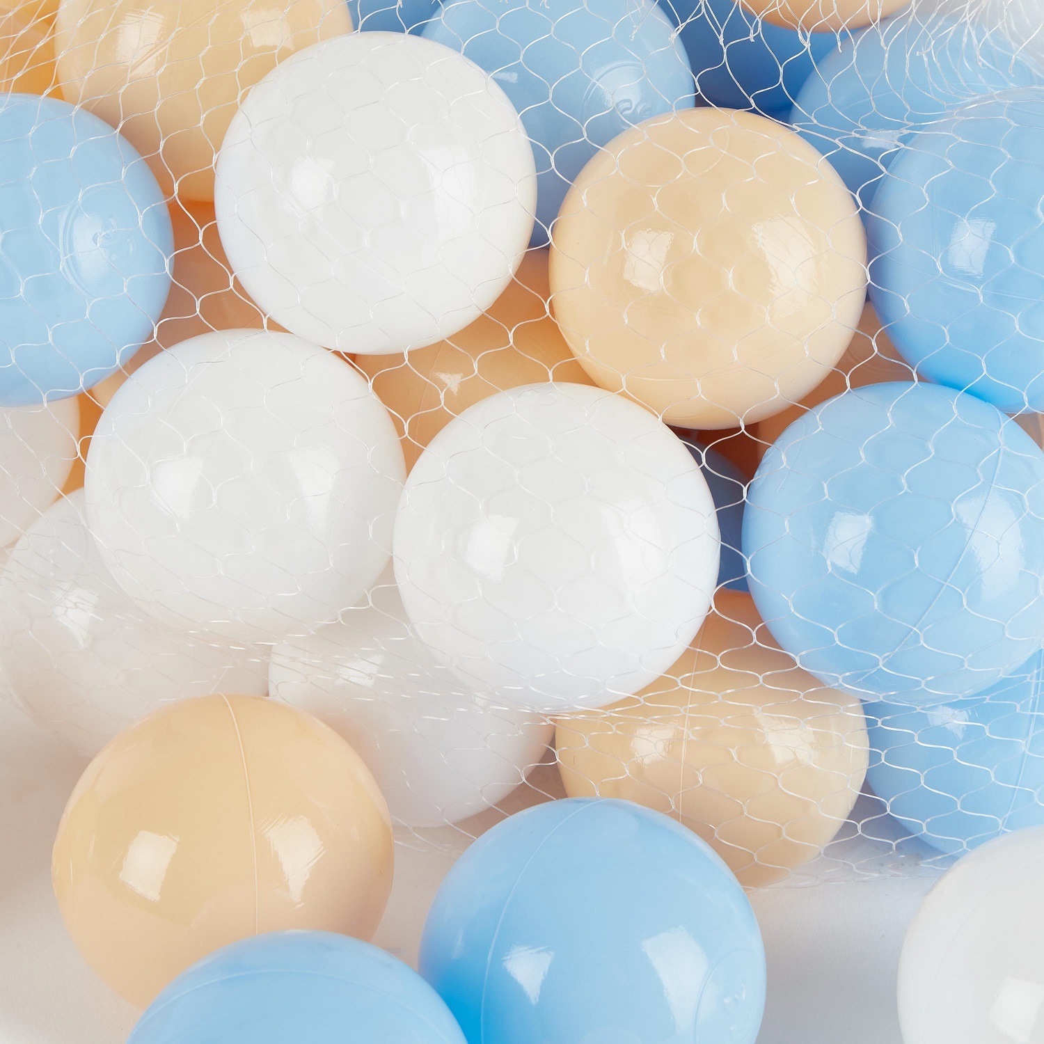 Objevte kouzlo barevných hracích míčků. Sada 100 ks hracích míčků v krásných barvách bílé, béžové a nebesky modré - jako den na pláži. Ideální zábava na zahradu, do hracího koutku nebo do vany či bazénu. Míčky využijete na hraní doma i venku. Perfektní doplněk pro dětskou radost a rozvoj jemné...