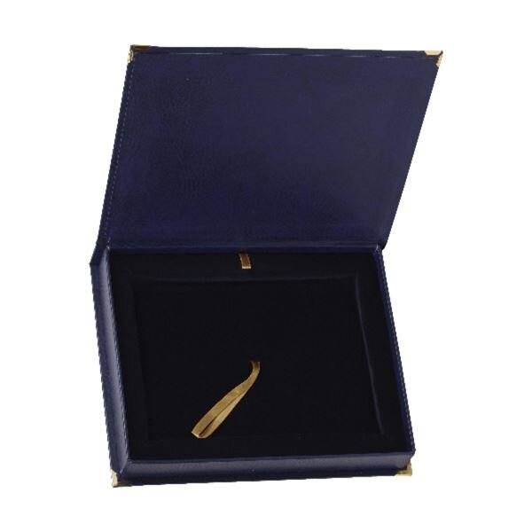 etuje pro dřevěnou podložku 200x250 mm; horizontální otevírání - víko etuje je upevněno na jedné z jejích delších stran ; materiál: imitace kůže ; vyjímatelná sametová výplň pro použití jako stojan ; rozměr etuje: 290x235 mm ; barva modrá prečítať celé