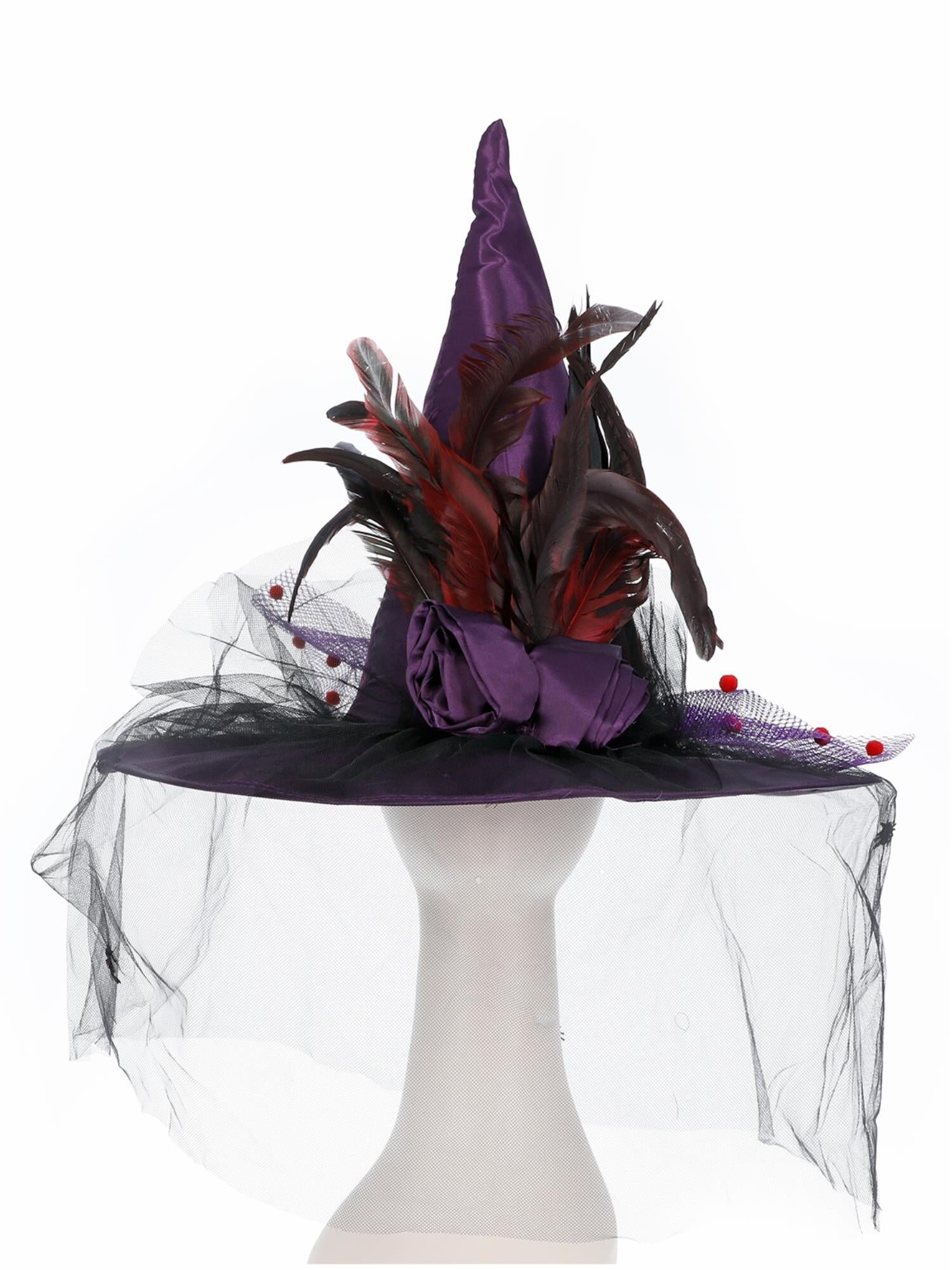 Smiffys Čarodějnický klobouk s peřím a závojem fialový