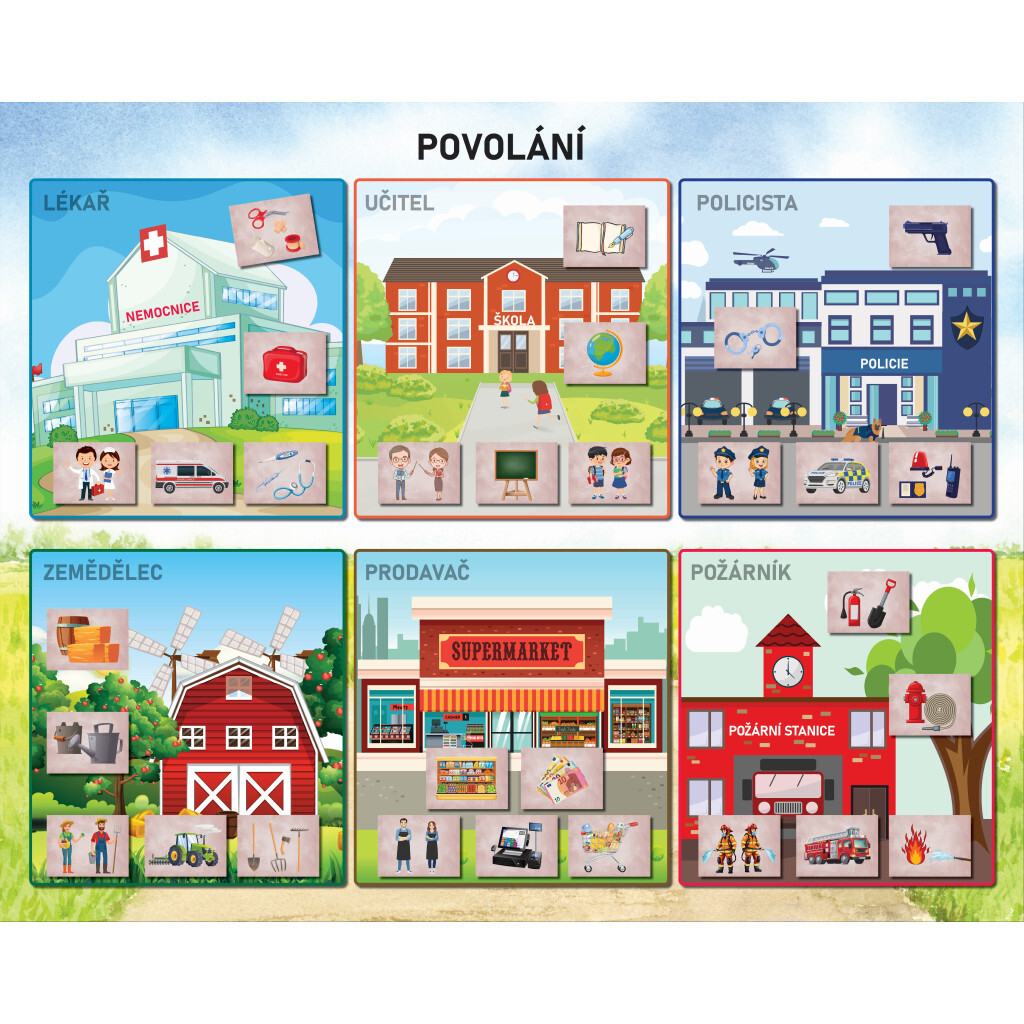 Povolání, závěsný naučný magnetický obraz a 30 karet