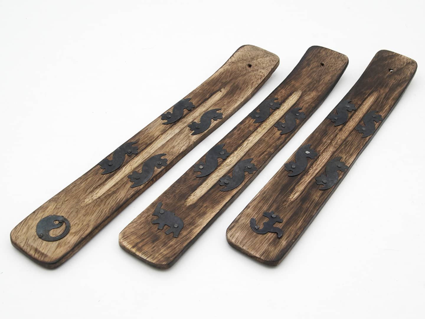 Klasický dřevěný stojánek na vonné tyčinky tvaru lyže se kovovým zdobením. Parametry Délka: 26 cm Materiál: Dřevo Zdobení: Kovové prečítať celé