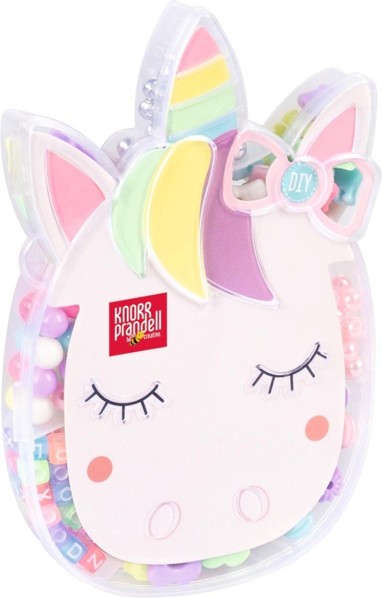 Set pro navrhování náhrdelníků a náramků. Balení obsahuje plastové korálky v různých barvách a provedeních, bílou a růžovou elastická nit a opakovaně uzavíratelnou krabičku. Perly barevně sladěné průhledné a neprůhledné. Vhodné pro děti od 4 let. Velikost balení 100 × 150 × 20 mm, 57 gramů.