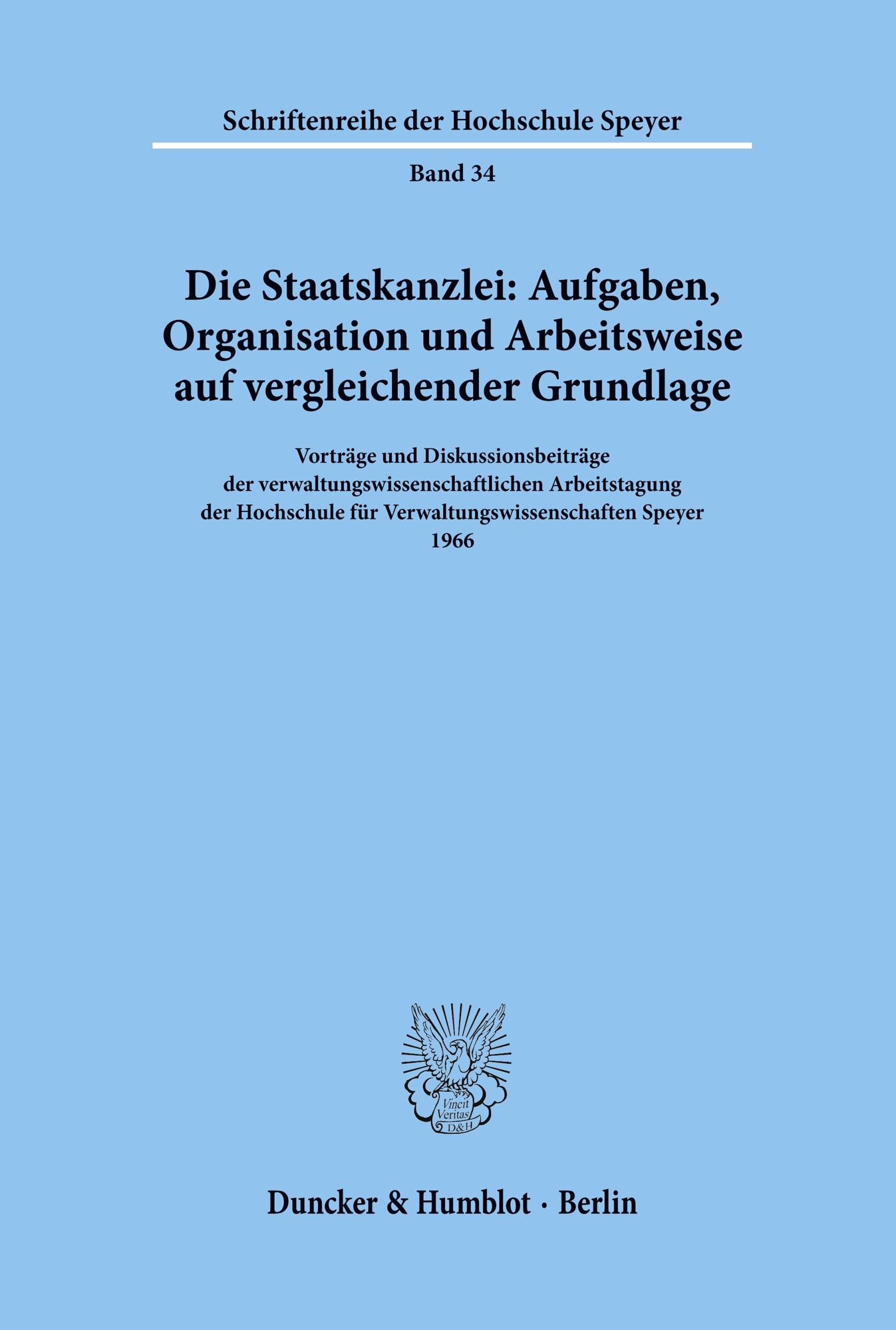 Die Staatskanzlei: Aufgaben, Organisation und Arbeitsweise auf vergleichender Grundlage. (německy)