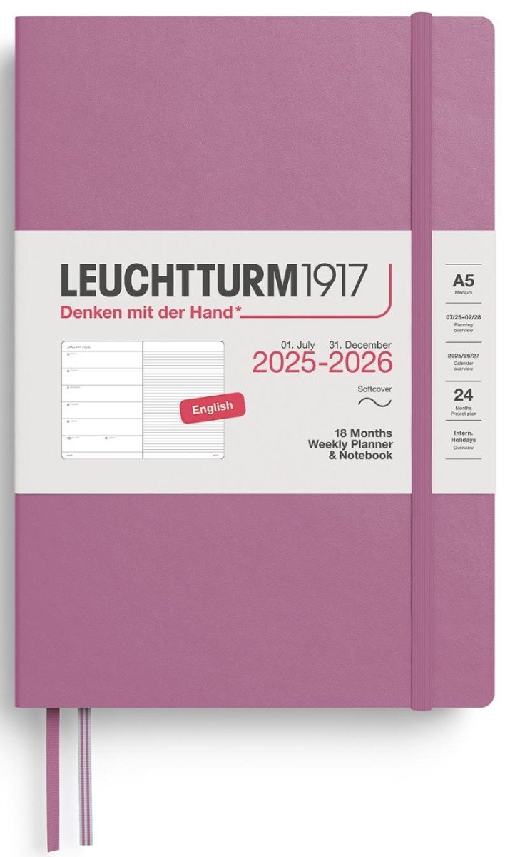 Weekly Planner & Notebook 2026 Medium (A5) 18 Months Dusty Rose