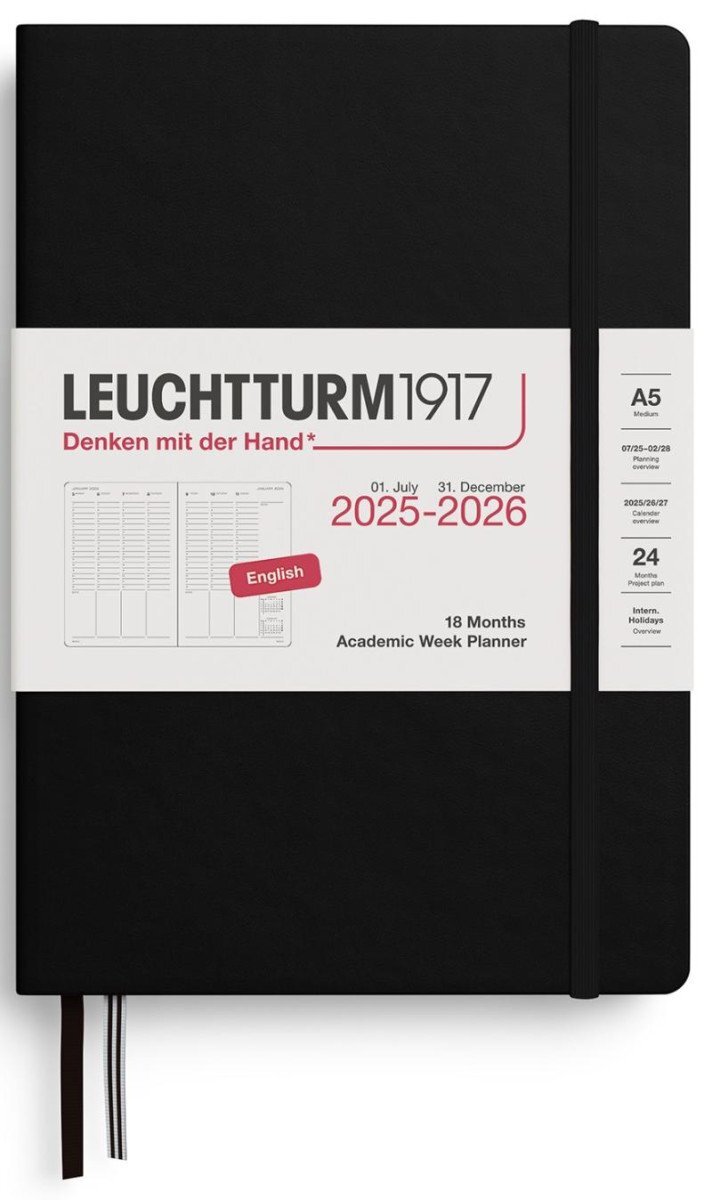Academic Week Planner 2026 Medium (A5) 18 Months Black