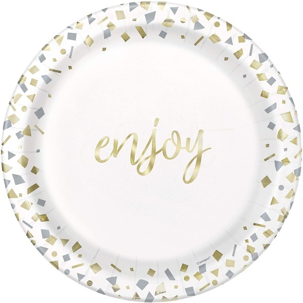 Talířky jsou vhodné pro narozeninovou oslavu ve zlaté barvě, ale hodí se také na jakoukoliv párty pro děti i dospělé.Zkombinujte tyto talířky s dalšími doplňky ve zlaté barvě a vaše prostřená tabule udělá na hosty velký dojem. Z těchto elegantních talířků bude všem patřičně chutnat a vy nebudete...