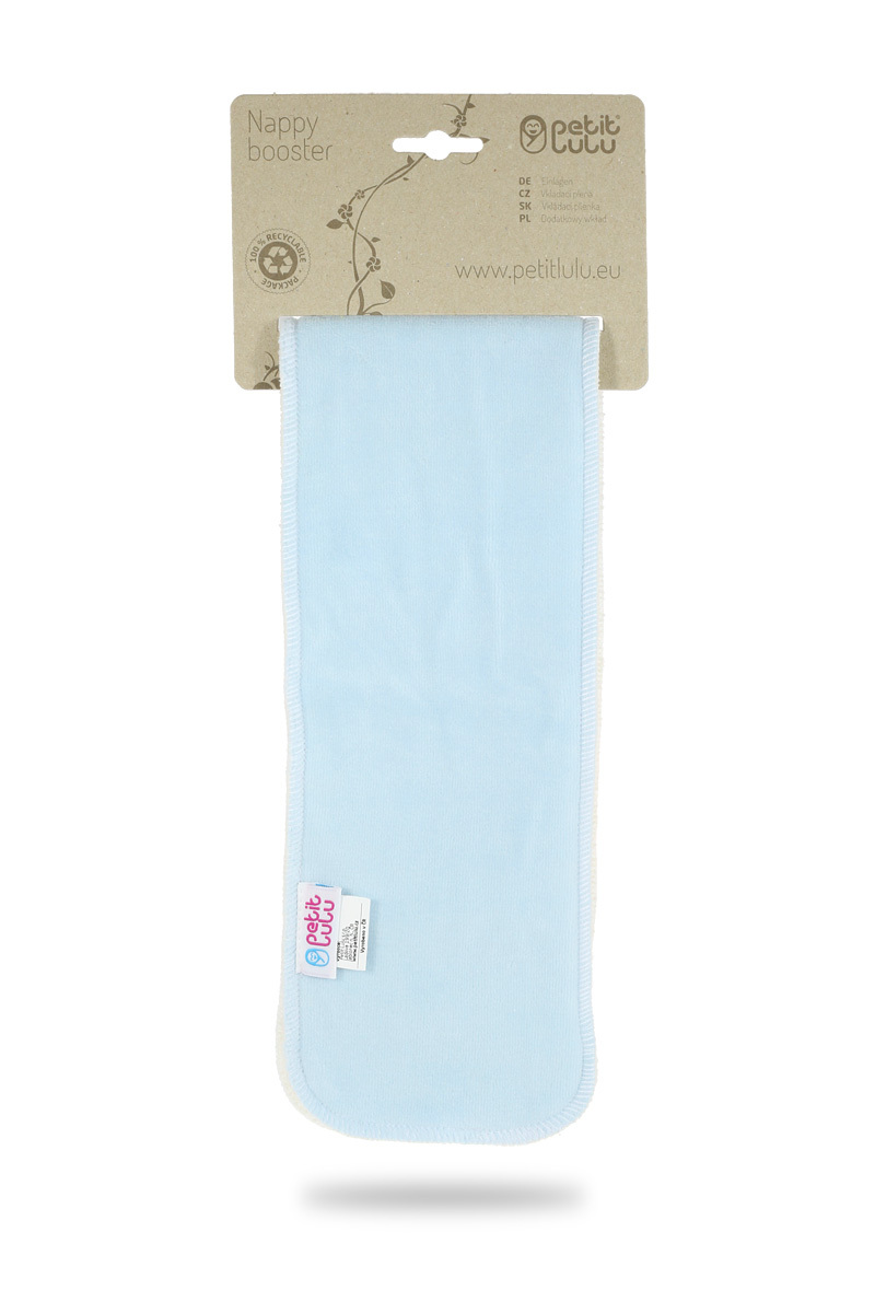 Vkládací plena dlouhá - Světle modráDlouhá třívrstvá vkládací plena. Používá se na zvýšení savosti jiných plen.Lze ji použít k těmto výrobkům: plena čtvercová, vícevrstvá, jednovelikostní a noční kalhotková aj.Složení:líc: 80% bavlna, 20% polyestervýplň a rub: 60% viskóza (bambus), 40% bavlna (bio)