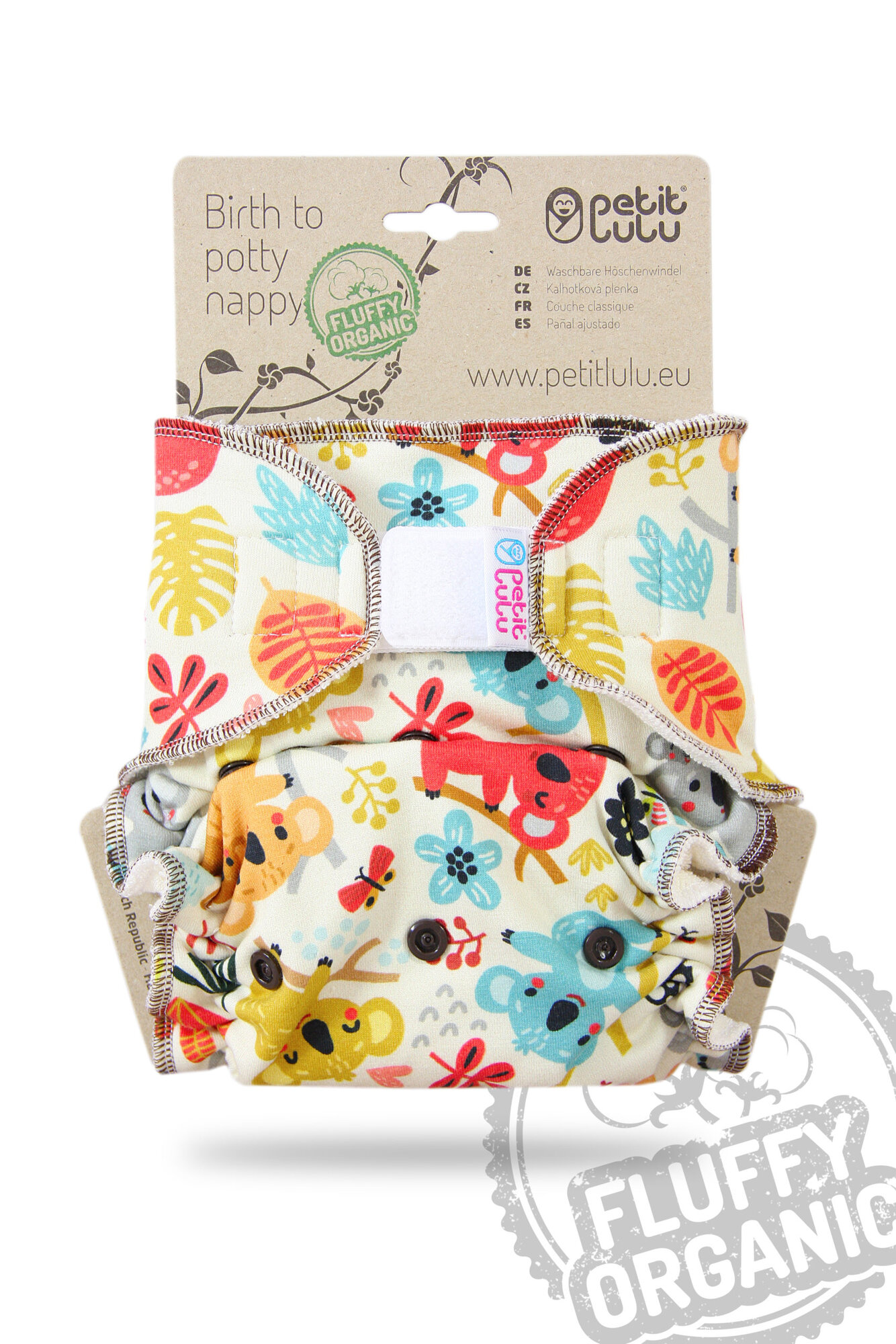 Kalhotková plena - suchý zip - Hravé koalyPřebalovací set Petit Lulu obsahuje kalhotkovou a vkládací látkovou plenu, v provedení Fluffy Organic využívající výjimečných přírodních vlastností. O roztomilý design se postará vzor s oblíbenými koalami.Kalhotková plenajednovelikostní plenka upravitelná...