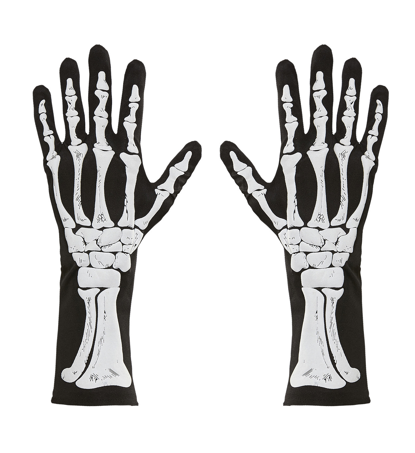 Rukavičky kostlivec, černé s bílým oboustranným potiskem. Materiál: 100% polyester Velikost: Dospělá univerzální Délka: 35 cm prečítať celé