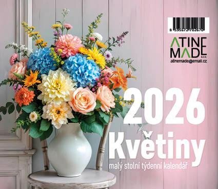 Kalendář 2026 Květiny, stolní, týdenní, 13 x 15 cm