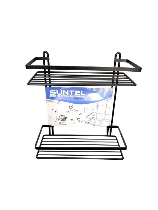 Polička koupel.obdelník 2patra lamel černá 24x11x35,5cm