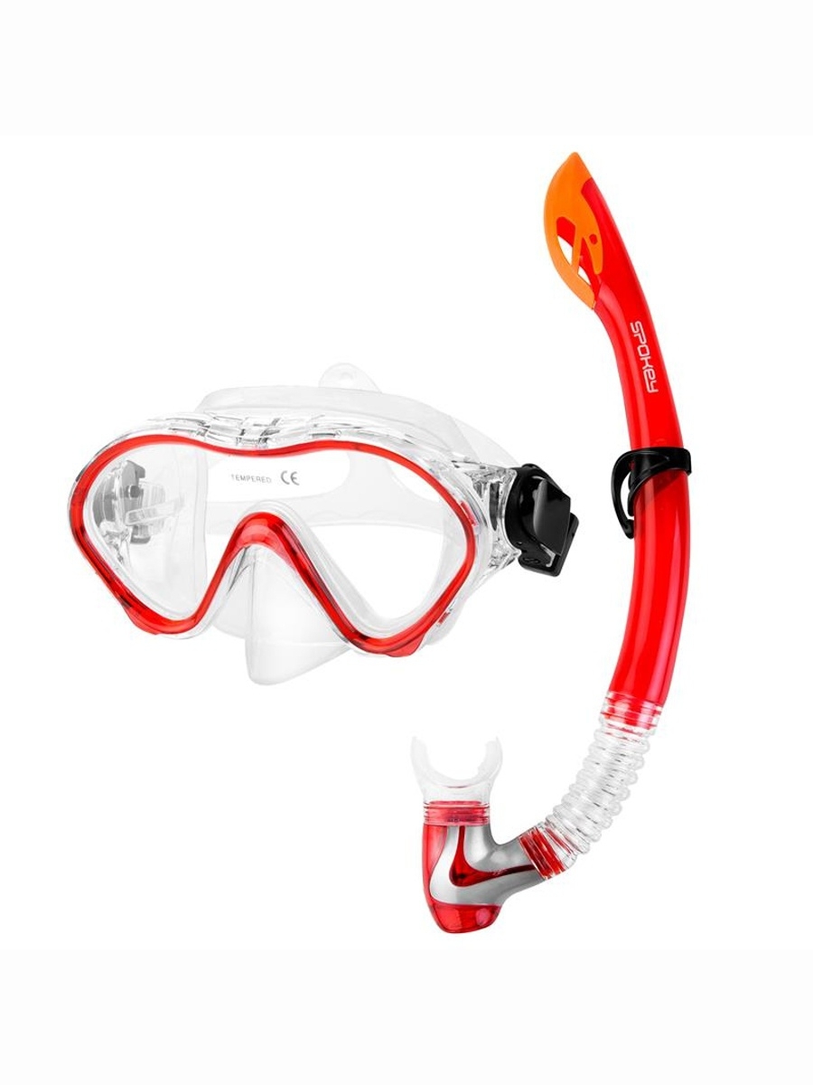 Juniorská sada masky a šnorchlu pro potápění. Má zesílené TG sklo a lícnice i pásek jsou ze silikonu. Šnorchl má náustek ze silikonu a trubku z PVC, má spodní ventil, koncovku ani-wave a elastickou spojku, která usnadňuje dopasování šnorchlu k obličeji. prečítať celé