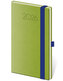 Diáře New Praga Diář je vyroben ze zajímavé matné koženky s nepravidelnou strukturou, navíc je doplněn o gumičku pro uzavření v kontrastní barvě. Vzhledem ke struktuře materiálu je vhodná pro sleporažbu bez fólie, nedoporučujeme však razit drobné texty, které mohou při ražbě zaniknout. Diář obsahuje: osobní údaje, plánovač dovolené (měsíční přehled), plánovací kalendář, mezinárodní svátky, roční výhled, týdenní layout, adresář
