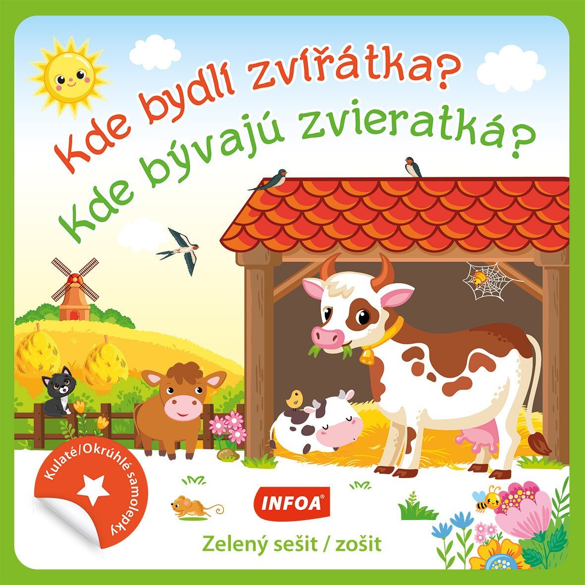 Kulaté samolepky Kde bydlí zvířátka? / Kde bývajú zvieratká? - zelený sešit /zošit