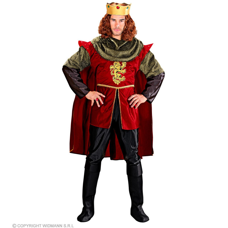 Pánský kostým královského rytíře Kostým obsahuje: kabát, plášt, kalhoty, návleky na boty, koruna s drahokam Velikost: XXL Materiál: 100% polyester prečítať celé