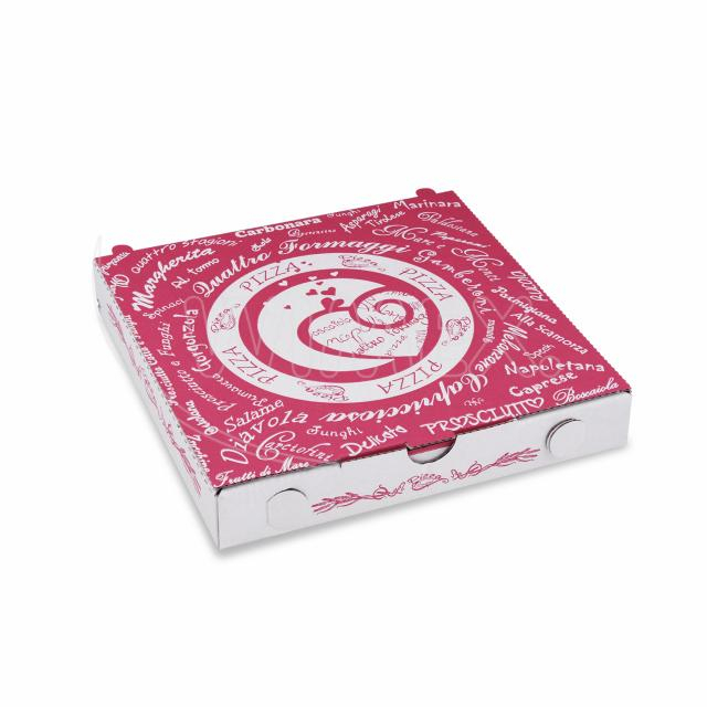 Krabica na pizzu (mikrovlnitá lepenka) C4 biela s potlačou 20 x 20 x 3 cm [100 ks] prečítať celé