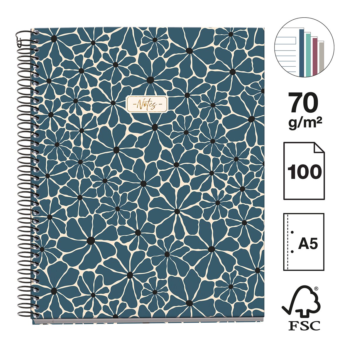 Miquelrius poznámkový blok - BOHO ESSENCE, NB - 4, A5, 70 g, karton, 100 listů, linka, Prussia