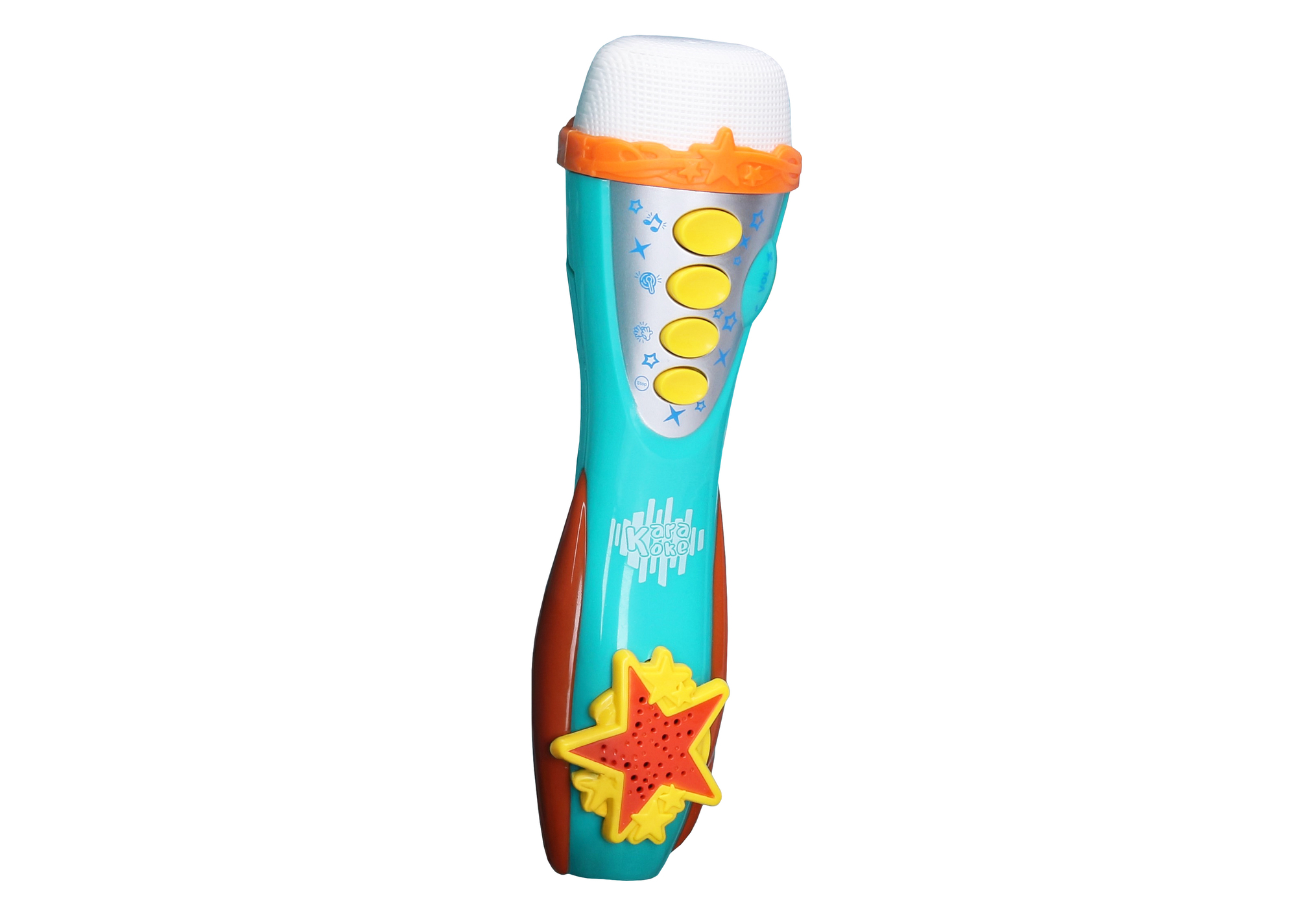 Mikrofon s efekty. Velikost 19x6x6cm. baterie 3xAAA nejsou součástí. nastavení hlasitosti, tlačítka: melodie, bicí, potlesk a stop. prečítať celé