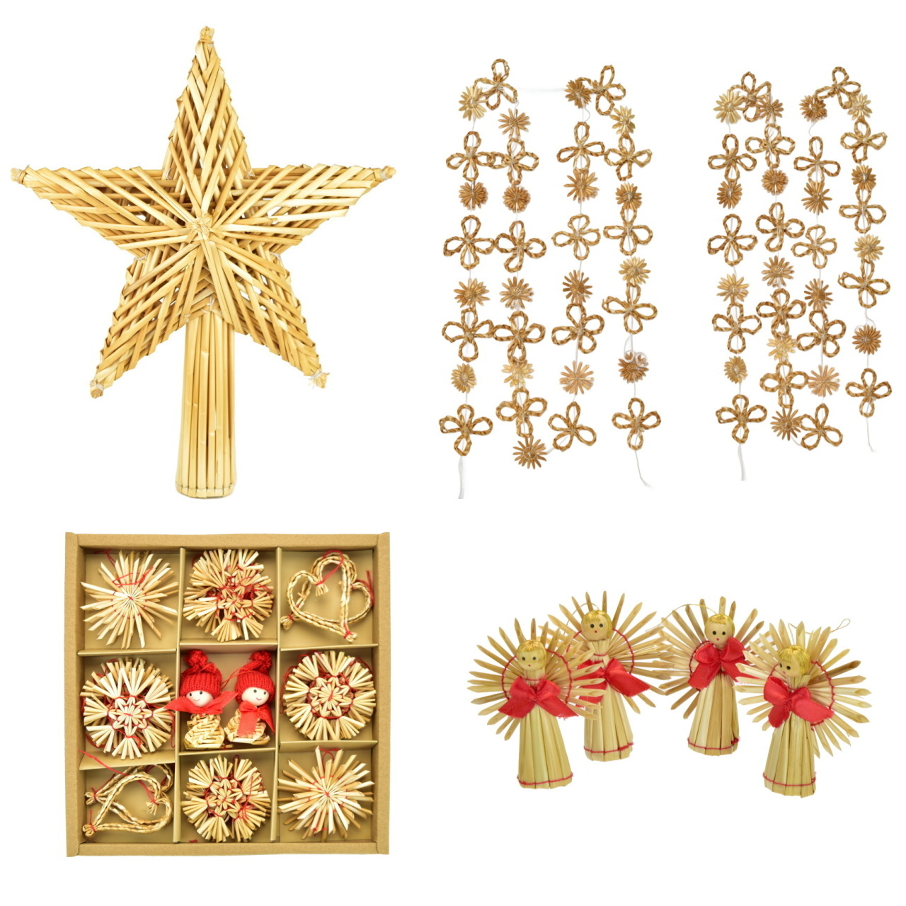 Slaměná špiška, 2 ks řetěvy, 4 ks andělíčci, slaměné ozdoby 30 ks