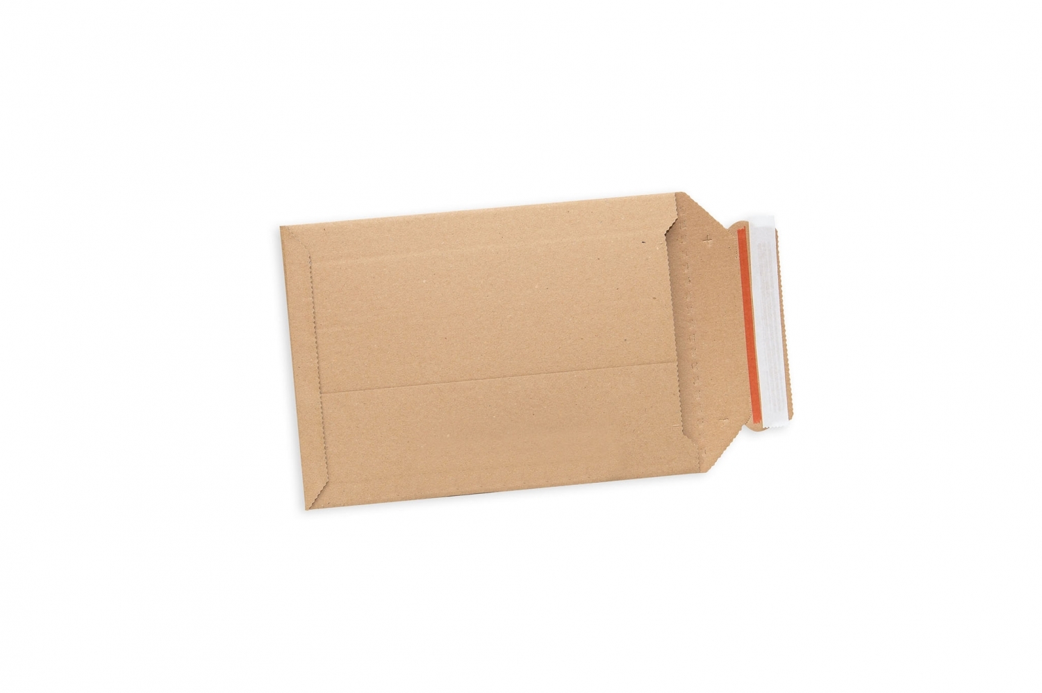Wyobraź sobie kopertę , która jest mocna jak pudełko kartonowe , a pudełko jest tak płaskie jak koperta. To solidne opakowanie wysyłkowe z tektury falistej, otwierające się szeroko wzdłuż linii zgięcia tworzących prostokąt może wytrzymać mocne uderzenie. Delikatna zawartość jest bezpiecznie owinięta wytrzymałym materiałem.