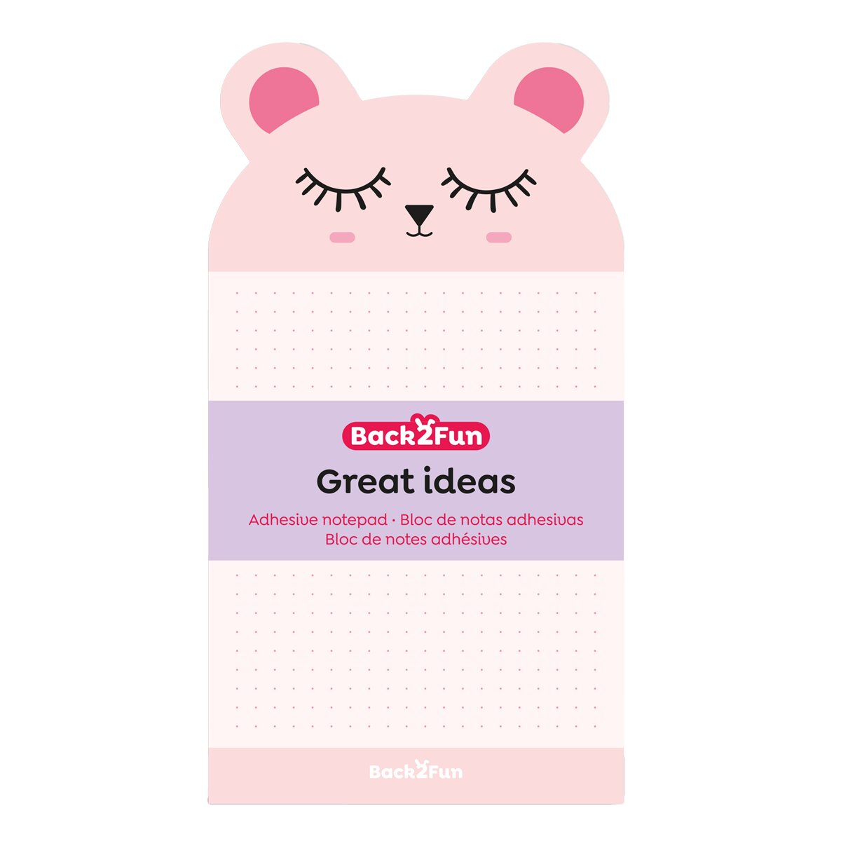 Miquelrius B2F - samolepicí bloček, medvěd, 60 listů, 90 g, tečky, růžový