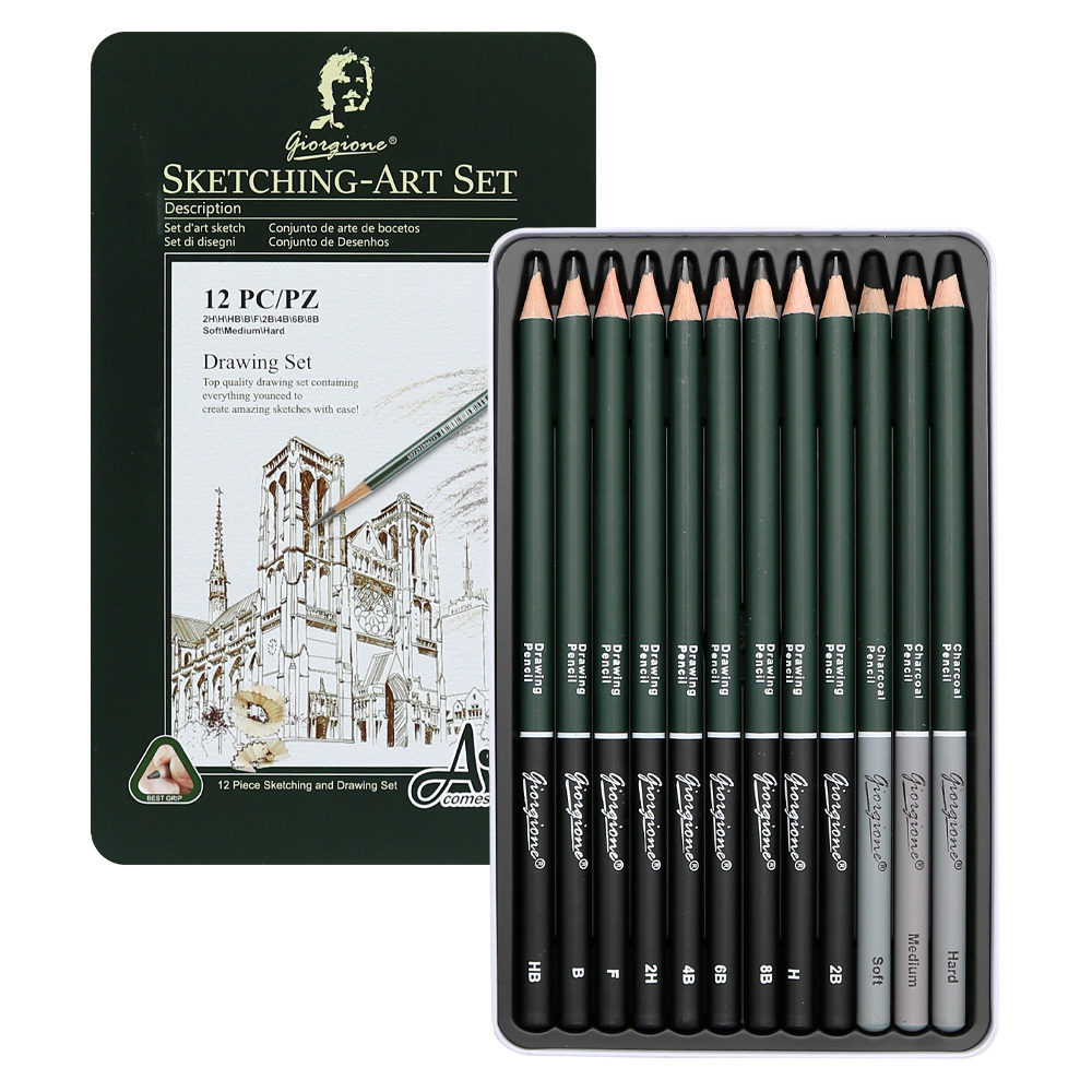 Sada tužek na kreslení a skicování (12 ks) v plechové krabičce