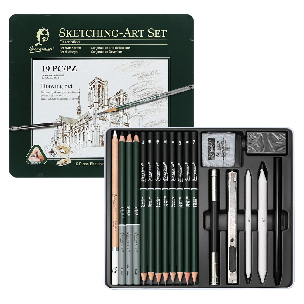 Kresliaca sada (skicovanie) obsahuje: ?ceruzky o tvrdosti 2H až 8B3 ceruzky: soft, medium, hard (s tuhou o hrúbke 3 mm)3 čierne uhlíky: soft, medium, hard biely, šedý a čierny pastel biela a šedá gumastrúhadlo papierové roztieratkaSúprava je vhodná ako pre začiatočníkov, tak pre pokročilých...