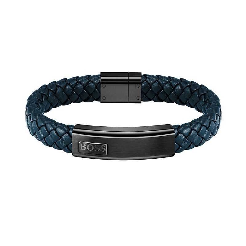 Tmavě modrý kožený náramek Lander 1580179M Hugo Boss