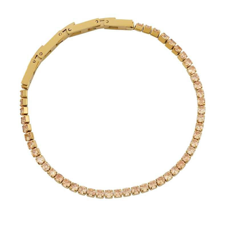 Třpytivý pánský náramek značky Liu.Jo je dokonalým doplňkem pro moderního muže. Vyrobený z kvalitní oceli a pozlacený žlutým zlatem, náramek zaujme nejen elegantním vzhledem, ale i oslnivými krystaly, které přitahují pozornost. Bezpečnostní spona zajišťuje pohodlné nošení, zatímco délka 21 cm se přizpůsobí různým zápěstím. Tento šperk je ideální pro každou příležitost a skvěle doplní váš styl.
