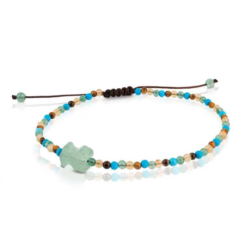 Stylový náramek od značky Tous spojuje jedinečné korálky z howlitu, kvarcitu, tygřího oka a aventurínu, které mají pozitivní vliv na vaši energii. Ozdoba ve tvaru medvídka dodává šperku nádech hravosti a originality. Díky posuvnému zapínání si délku snadno přizpůsobíte podle svých potřeb. Tento... prečítať celé