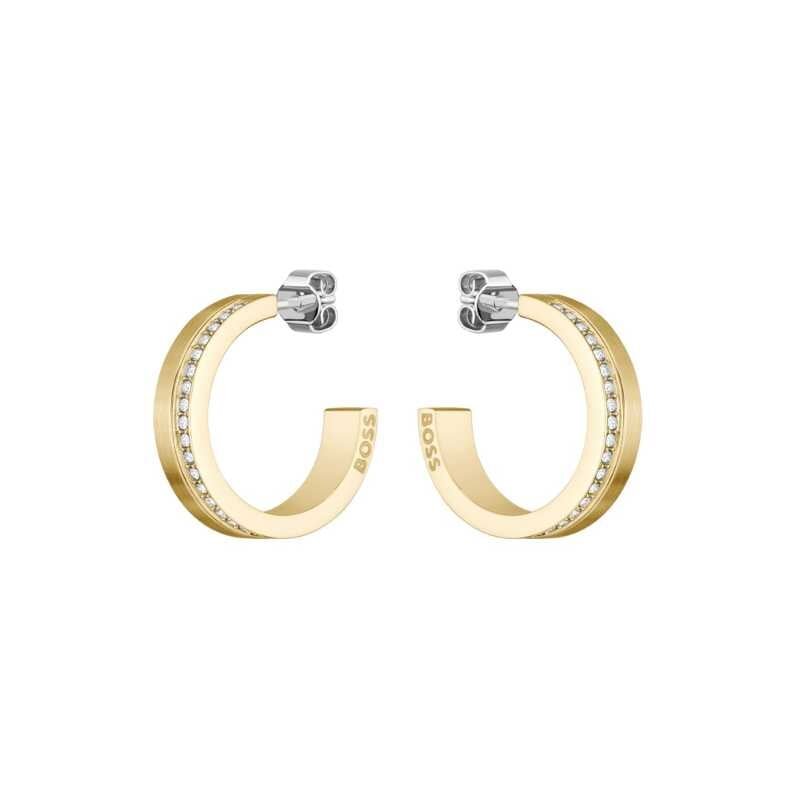 Slušivé pozlacené kruhové náušnice 1580522 Hugo Boss