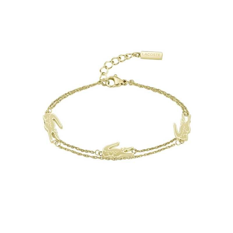 Náramek značky Lacoste spojuje eleganci s moderním designem. Vyroben z kvalitní oceli a pokovený zlatou PVD úpravou, zajišťuje dlouhou životnost a atraktivní vzhled. Dvojité provedení s ikonickým krokodýlem přitahuje pozornost a podtrhuje váš osobní styl. S délkou 16,5 cm a možností prodloužení o 2,5 cm se stává ideálním doplňkem pro každou příležitost. Vsaďte na luxus a dokonalost, kterou tento náramek nabízí.