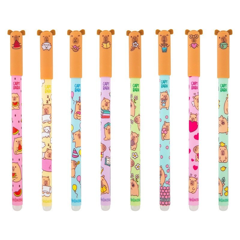Kolekce gumovatelných per s veselým víčkem ve tvaru roztomilé kapybary. prečítať celé