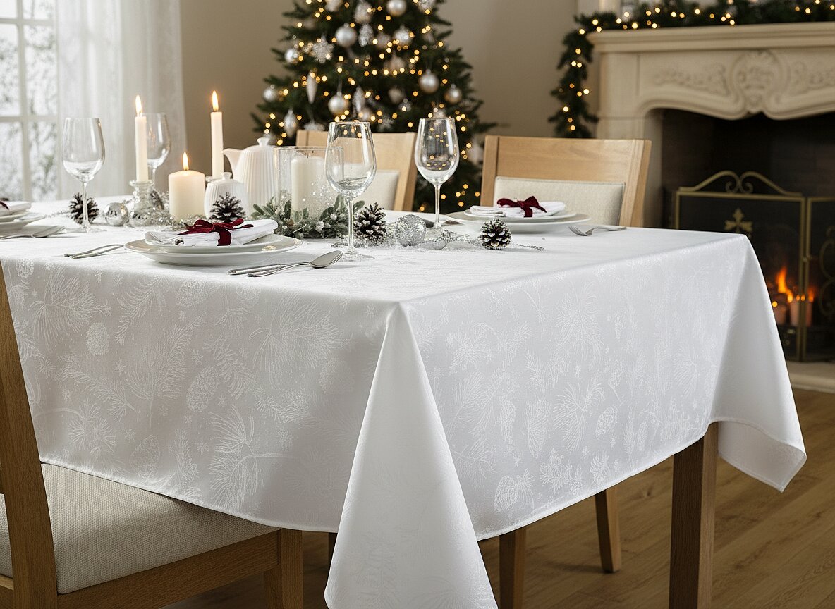 Vánoční ubrus na stůl PINE CHARM 145x220 cm bílá
