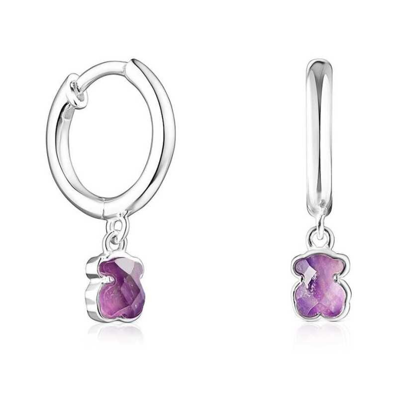 Elegance a hravost se snoubí v visacích náušnicích značky Tous. Vyrobeny z kvalitního stříbra, tyto náušnice kombinují drobné kroužky s ikonickými medvídky zdobenými ametystem. Průměr kruhu činí 1,1 cm a výška přívěsku 0,5 cm, což zaručuje perfektní proporce. Bezpečnostní zapínání na kloub chrání... prečítať celé