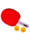 Sada je určena začínajícím hráčům pro rekreační hru. Praktická souprava – raketa se dvěmi míčky v pouzdřeParametry:počet vrstev: 7tloušťka pěnovky: 2.0 mmrukojeť: FL (profilovaná) – širší na koncích rukojetí a užší uprostřed, tuto pálku rádi vybírají hráči s menšími dlaněmirychlost: 1/10:...