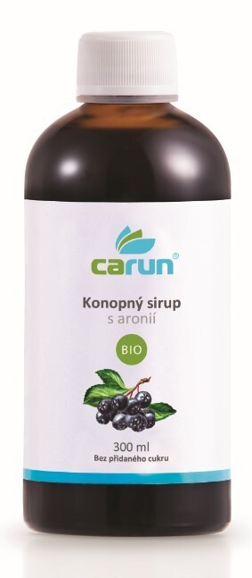 Konopný sirup s příchutí arónie - konopí má dlouhou historii a jeho příznivé účinky potvrzují tradice po celém světě, i arónie patří mezi plody (původem ze Severní Ameriky), které jsou známy vysokým obsahem vitamínu C. Výzkumy dokazují, že v plodech arónie je kromě velkého množství vitamínu C obsažen také vitamín E, K, B1, B2, B6 , B9, A, P.