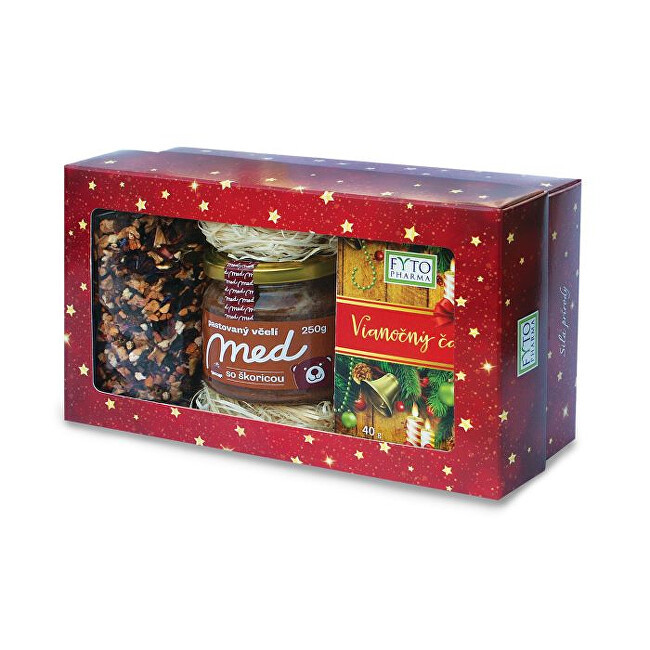 Fytopharma Dárková kazeta Vánoční čaje sypaný 100 g + porcovaný 20 x 2 g + pastovaný med se skořicí 250 g