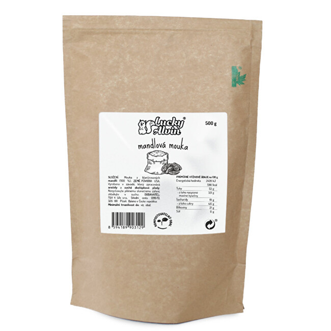 Mouka z nepražených blanšírovaných mandlí. Hlavní benefity: Vysoký obsah vlákninyPřirozeně bezlepkováLehce nasládlá chuťVýborný zdroj bílkovin a nenasycených mastných kyselinUžití: pečení plnohodnotná náhrada klasické mouky dochucování a zdobení sladkých i slaných pokrmůBaleno v kompostovatelném...