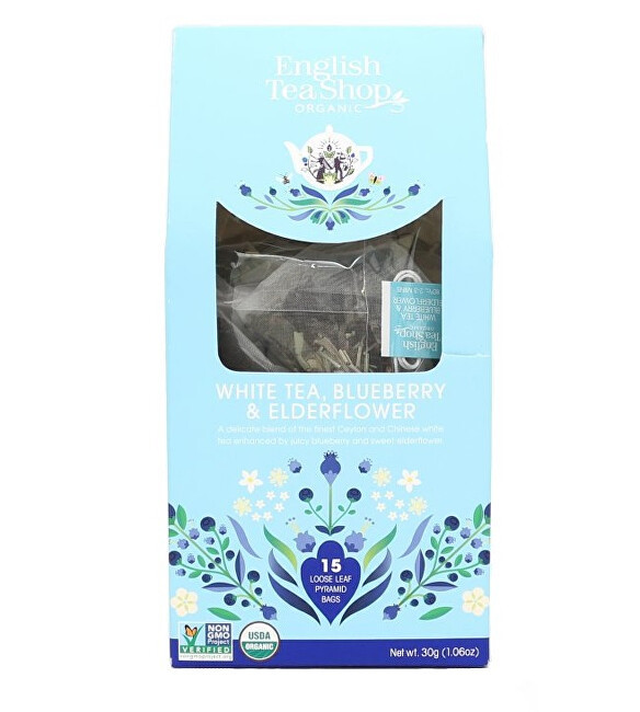 English Tea Shop Biely čaj, čučoriedka a baza 15 pyramídok sypaného čaju
