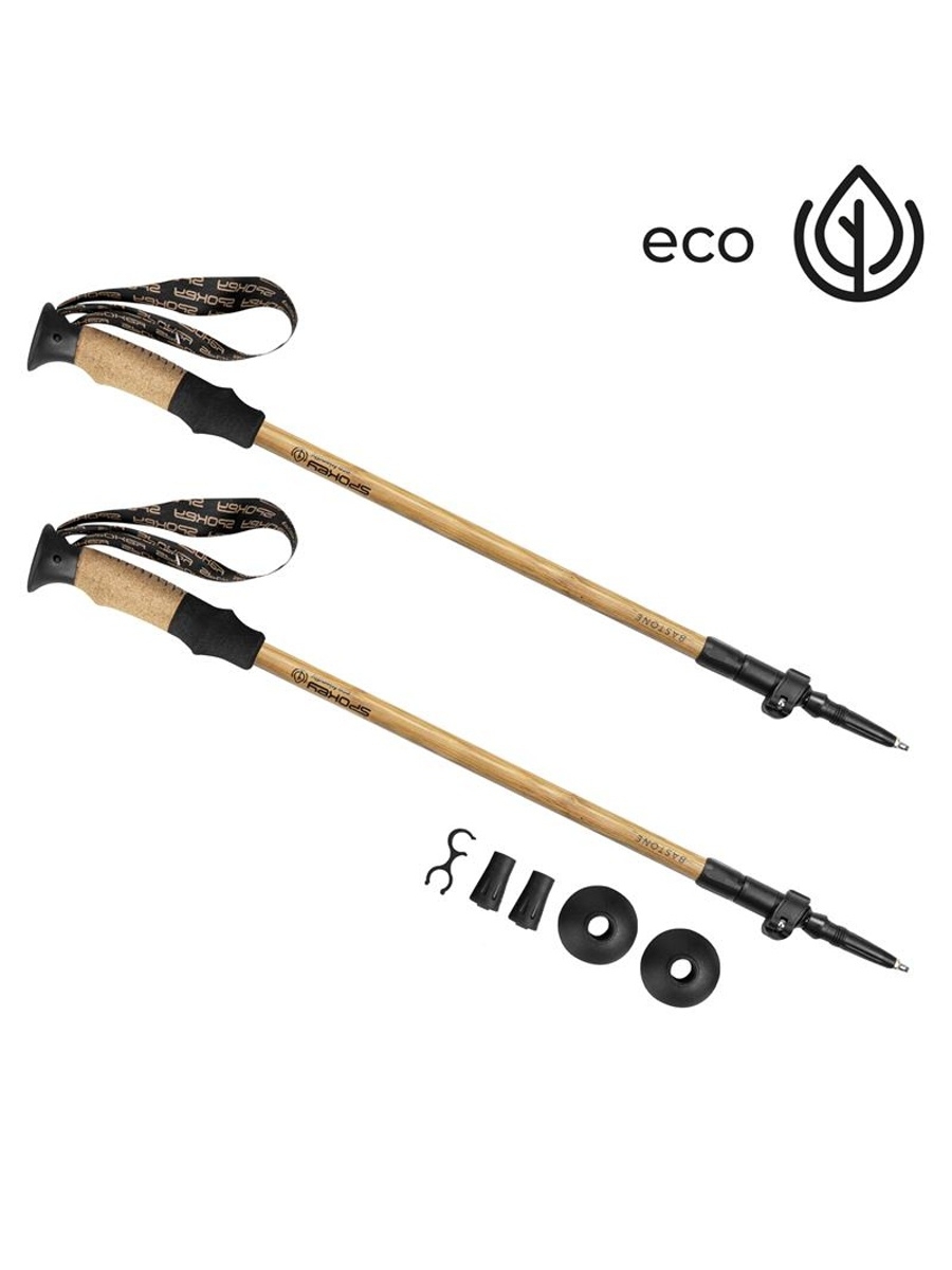 Trekingové hole Spokey BASTONE:jsou součásti naší řady EKO – vyrobeny z ekologických materiálů (bambus, korek), které lze recyklovat!díky možnosti nastavení délky holí v rozmezí 105-135 cm, si můžete přizpůsobit délku dle svých potřebrukojeti jsou vyrobeny z přírodního korku, který dobře tlumí...